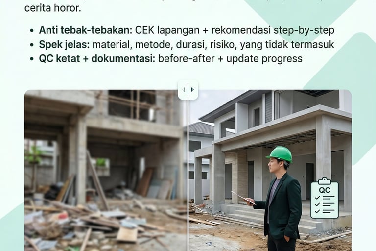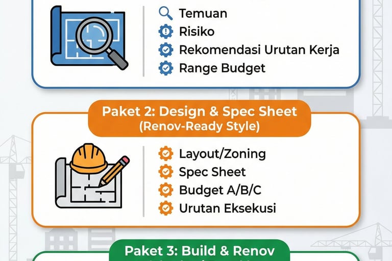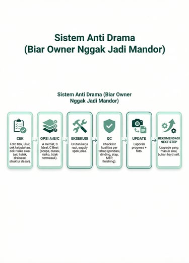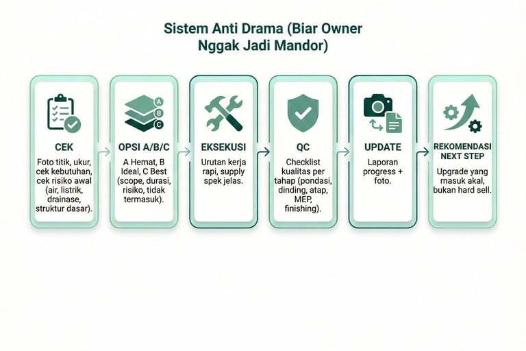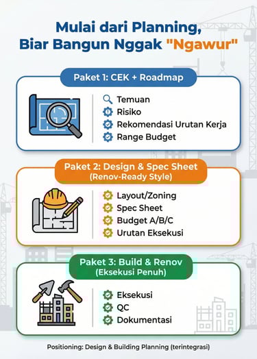 Target: jadi cepat, fungsi jalan, rapi cukup, risiko terkontrol (bukan mewah).
