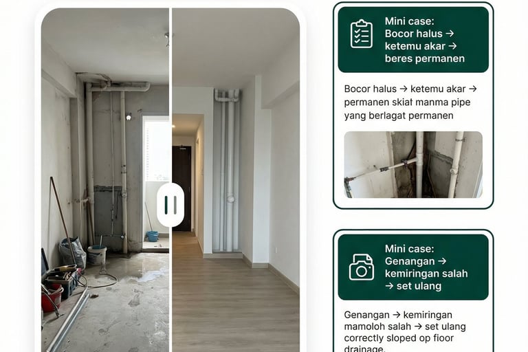 Kamar mandi: area basah lebih serius (waterproofing terukur, bukan cuma “oles dikit”)