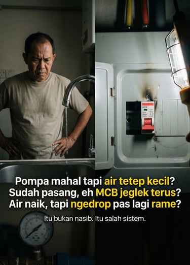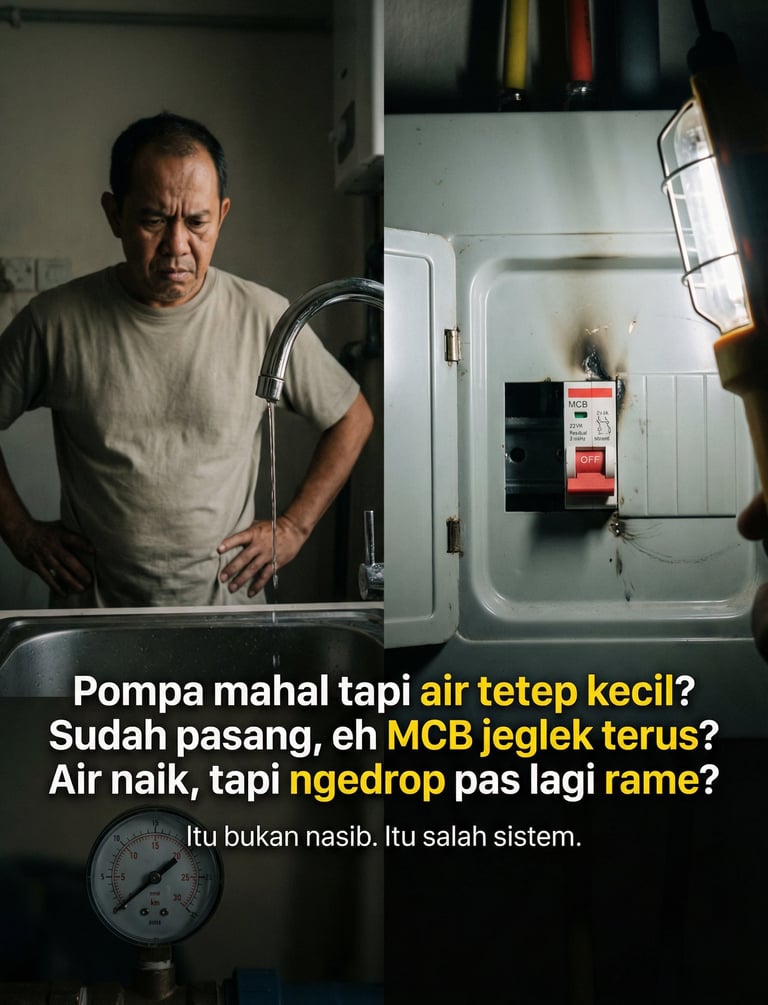 masalahnya di pompa, di sumur, atau di sistem distribusi air rumah.